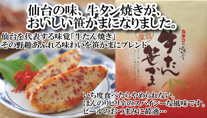 牛たん笹かま 仙台の味、牛たん焼きが、美味しい笹かまになりました。 仙台を代表する味覚「牛たん焼き」、その野趣あふれる味わいを笹かまにブレンド。 美味しさ長持ち♪ 【化粧箱入り】【各種のし対応】
