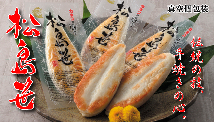 第66・68・70・73回 全国蒲鉾品評会 水産庁長官賞受賞商品 松島笹 肉厚の醍醐味…おいしさのスケールが違います。 日本三景みちのく松島の、雄大で壮麗なイメージをかたちにした松島笹。 1枚当たり約100gのすり身を使用した、肉厚でふっくらとした美味しさは、カネコ自慢の逸品です。 美味しさ長持ち♪ 【化粧箱入り】【各種のし対応】 ※商品画像はイメージです。