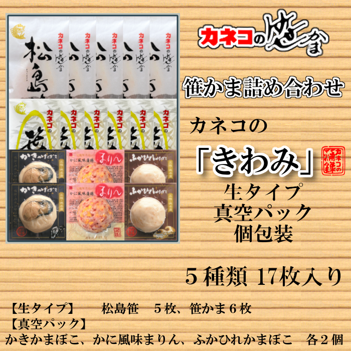 カネコの「きわみ(極)」生タイプ カネコ自慢の定番商品の詰合せです。 お中元・お歳暮・慶弔品、通年を通して人気のある「かまぼこセット商品」です♪ 焼き立ての美味しさそのままに♪ 【化粧箱入り】【各種のし対応】
